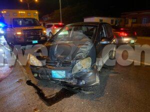 Diasabra anochi a drenta informe di un accidente frontal cu hende herida na e crusada “T” pabao di Centro di Husticia na Santa Cruz, mesora a dirigi tanto polis como ambulans na e sitio. Na yegada di e patruya a bin compronde cu aki ta trata di un accidente frontal entre un Hyundai Getz y un Hyundai Santa Fe unda e Getz biniendo di nort a bira pa bay pa riba pero a lora net ora cu e Santa Fe di direccion contrario y a dal e bir’e cara panort. Den e Getz tabata tin un chauffeur di edad cu a haya un kap na su cabes. Na yegada di e ambulans nan a atende y a transporte pa hospital.