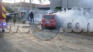Diadomingo mainta un bisiña a nota cu e motor di un auto di su bisiña ta na candela na Nuñe, mesora a dirigi tanto polis como bombero na e sitio. Na yegada di e bomberonan a nota e Nissan Note A79532 su motor tabata na candela mesora a drenta accion pa paga e candela cu a kima henter e parti motor y e dashboard y sienta den e auto. Despues di e combate bomberonan a logra domina e candela polis a yega pero no a haya ningun habitante lanta aunke e boroto duro di e bombero y e candela. Bomberonan a caba di paga e candela y a bandona e sitio.