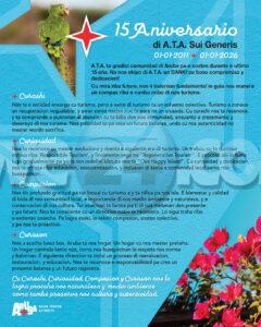 Un danki na e ekipo di A.T.A. pa nan compromiso y dedicacion. Ta gradici comunidad di Aruba pa nan sosten durante e 15 añanan aki, pero tambe ta gradici Gobierno di Aruba, tur socio y partner di e industria turistico pa nan sosten y colaboracion.