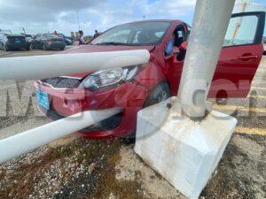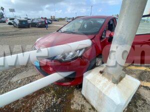 Diabierna atardi a drenta informe di un accidente cu hende herida na entrada di e refineria, mesora a dirigi tanto polis como ambulans na e sitio. Na yegada di e patruya a bin compronde cu e dama chauffeur di un Kia tabata tur distrai bay dal na e tubonan na e entrada di e refineria. Na yegada di e ambulans nan a a atende na e sitio mes.
