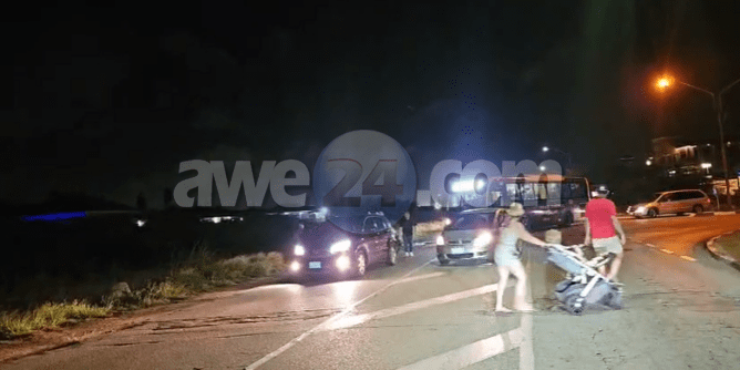 Diabierna anochi a drenta informe di un accidente na Palm Beach, mesora a dirigi un patruya na e sitio. Na yegada di e patruya a bin compronde cu aki ta trata di un accidente na e crusada banda di Palm Beach Plaza unda un bus di Arubus a bay subi e caminda pero no a duna preferencia na e auto pasando bay stret nort y nan a dal den otro. Afortunadamente ningun hende a resulta herida.