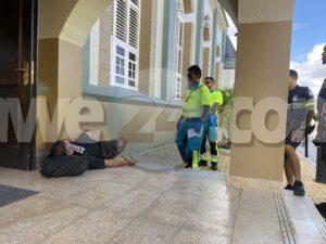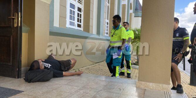 Diaranson mainta a drenta informe di cu tin un persona benta abao banda di Pro Catedral San Francisco, mesora a dirigi un patruya na e sitio. Na yegada di e patruya a bin compronde cu e homber ta malo y tin hopi dolor na su pecho. Polis a pidi pa ambulans bin control’e. Na yegada di e ambulans nan a atende e persona y transporte pa hospital.
