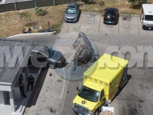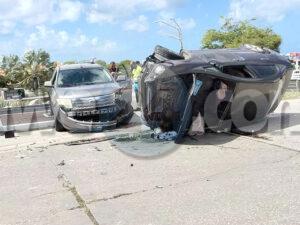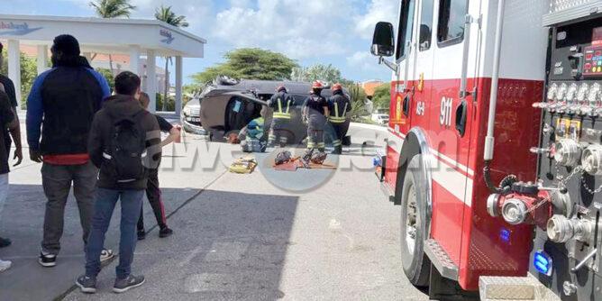 Diahuebs mainta a drenta informe di un accidente cu hende herida y auto cu a kentel riba e tereno di e pompstation di Sero Blanco, mesora a dirigi tano polis, ambulans como tambe bomberonan na e sitio. Na yegada di e patruya a bin compronde cu aki ta trata di un accidente entre un Ford Edge y un Honda Civic unda cu e Honda a kentel den banda y e chauffeur a keda atrapa den e auto. Na yegada di e bomberonan a yuda saca e victima for di e auto. Mientras na yegada di e ambulans a atende e victima y transporte pa hospital.