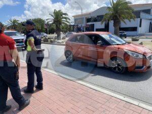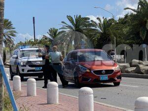 Diabierna merdia a drenta informe di un accidente cu hende herida na Palm Beach, mesora a dirigi tanto polis como ambulans na e sitio. Na yegada di e patruya a bin compronde cu e chauffeur di e MG a bay dal tras di un otro auto. Debi na e impacto e chauffeur di e MG a resulta herida. Na yegada di e ambulans nan atende e victima y a transporte pa hospital.