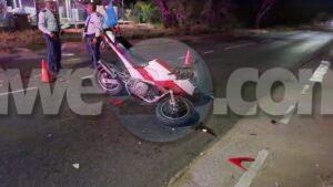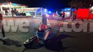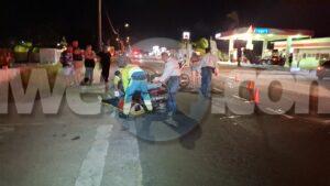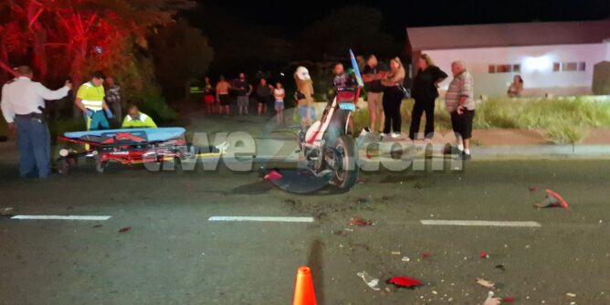 Diadomingo anochi a drenta informe di un accidente cu hende herida na Savaneta, mesora a dirigi tanto polis como ambulans na e sitio. Na yegada di e patruya a bin compronde cu e chauffeur di e auto cu tambe sa core brommer a sali dilanti un pareha riba brommer sin cu ela mira nan y nan a accidenta. Debi na e impacto ambos riba e brommer a resulta herida e homber mas serio cu e muher. Na yegada di e ambulansnan a atende ambos victima y a transporta nan pa hospital.