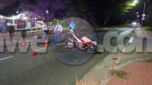 [VIDEO] Auto a sali dilanti brommer sin duna preferencia, motociclista y e dama a resulta herida den accidente na Savaneta