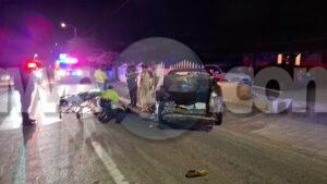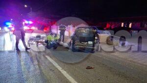 Dialuna madruga a drenta informe di un accidente cu hende herida na Noord, mesora a dirigi tanto polis como ambulans na e sitio. Na yegada di e patruya a bin compronde cu un chauffeur a para pa 2 peaton crusa riba zebrapad y un s.u.v. cu “mataburo” dilanti a bay dal e auto cu a para pa e peatonnan mand’e bay dal riba un cura di cas mientras e s.u.v. mes a sigui core bay. E peatonnan mester a core bula pa e auto no dalnan. Debi na e dobbel impacto e chauffeur di e auto a resulta herida. Na yegada di e ambulans nan a atende e victima y a transporte pa hospital.