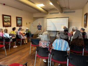 Cu hopi interes bishitantenan a asisti na e charla “Evidencia a termino largo di adaptacionnan na cambionan climatologico”. E presentacion aki ta un compilacion di investigacion di arkeologo Harold Kelly di MANA te cu awo. Na final bishitantenan a haya e oportunidad pa haci tur nan preguntanan y intercambia cu arkeologo Kelly.