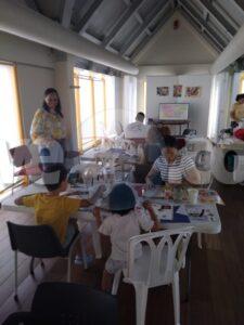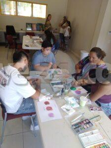 Grandi y chikito a bira creativo cu e tayernan di artistanan Andreea Cavajdan y Jo-ann Ridderstap. Nan a crea un “Vision board” pa 2026 visualisando tur locual nan ta desea pa e aña aki y a siña tecnica pa pinta un paisahe di fantasia cu verf di awa.