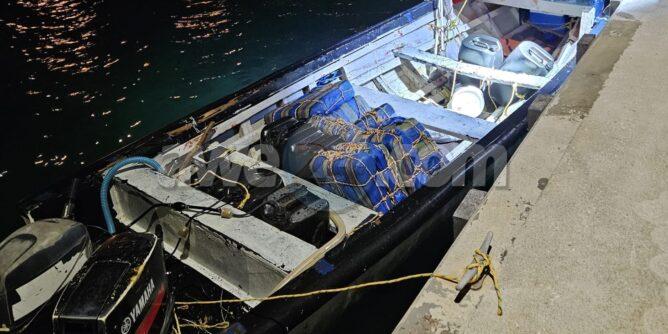 Bij nadering van de positie werd vastgesteld dat het ging om een vaartuig met zeven personen aan boord. Tevens werden meerdere pakketten op het vaartuig waargenomen. Het vaartuig werd direct onderschept en vervolgens overgebracht naar het Steunpunt om het onderzoek voort te zetten. Het betrof zeven mannen van Venezolaanse nationaliteit, die probeerden een hoeveelheid verdovende middelen Aruba binnen te smokkelen.