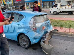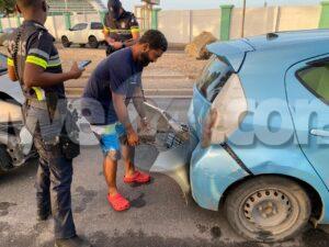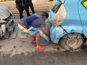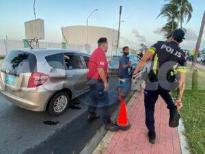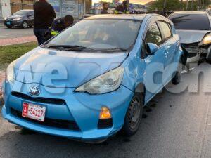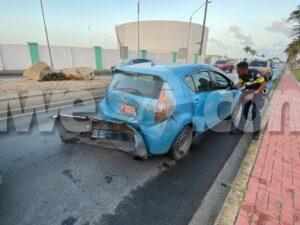 Diamars mainta a drenta informe di un accidente di cadena cu hende herida banda di Citgo Blvd., mesora a dirigi tanto polis como ambulans na e sitio. Na yegada di e patruya a bin compronde cu aki ta trata di un accidente di cadena entre 3 auto unda cu e chauffeur di un Honda Fit no a regula su velocidad ni a mantene distancia a bay dal tras di un Toyota Aqua y consecutivamente esaki a bay dal tras di un Chevrolet Equinox. Debi na e dobel impacto e dama chauffeur di e Toyota Aqua a resulta herida. Na yegada di e ambulans nan a atende e dama herida y a transporte pa hospital.