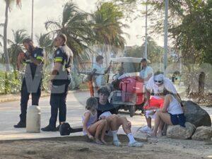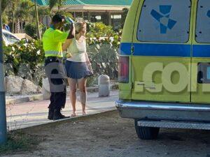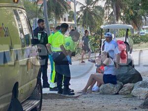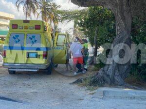 Diamars atardi a drenta informe di un accidente cu hende herida na Eagle Beach, mesora a dirigi tanto polis como ambulans na e sitio. Na yegada di e patruya a bin compronde cu aki ta trata di un accidente unda un dama turista coriendo riba step electrico a bay dal den banda casi ful patras di un bus pasando y a dal abao. E turista tabata keha di dolor di pecho y tabata tin herida na su rudianan. Na yegada di e ambulans nan a atende e turista na e sitio mes.