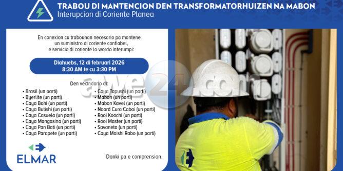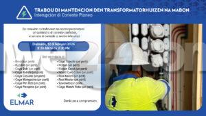 Durante e trabou, ta necesario pa desconecta temporalmente e coriente pa garantisa seguridad tanto pa ELMAR su tecniconan como habitantenan y negoshinan den e area.