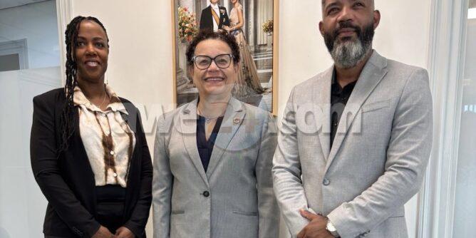 Foto (van links naar rechts): mevrouw Pemberton-Leonard (directeur Stichting Reclassering), mevrouw Flanegin (procureur-generaal van Aruba) en dhr. Arnhem (Korpschef).