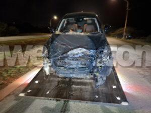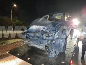 Diamars anochi a drenta informe di un accidente riba Sasakiweg, mesora a dirigi un patruya na e sitio. Na yegada di e patruya a bin compronde cu e chauffeur cu un auto nobo bayendo su cas a perde control unda un auto a bay haci maniobra ela purba di desvia pa evita e impacto y a perde control baha caminda y a accidenta entre e matanan, mientras e otro chauffeur a sigui su caminda sin para. Afortunadamente e chauffeur a logra sali ileso di e accidente aki pero su auto nobo si a keda destrui.