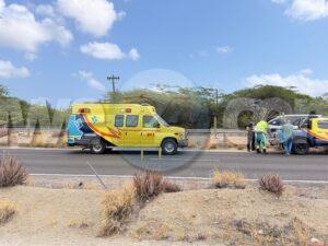 Diahuebs merdia a drenta informe di cu un auto a dal un persona riba e “green corridor” na altura di ex-Young Fellow na Barcadera, mesora a dirigi tanto polis como ambulans na e sitio. Na yegada di e patruya a bin compronde cu aki ta trata di cu un auto lo a dal un peaton pero e peaton ta para riba su pianan ainda. E chauffeur cu a dal e peaton ta indica cu ela dal e peaton basta duro y pa mas sigur a pidi ambulans pa bin controla e peaton. Na yegada di e ambulans nan a atende y controla e peaton.