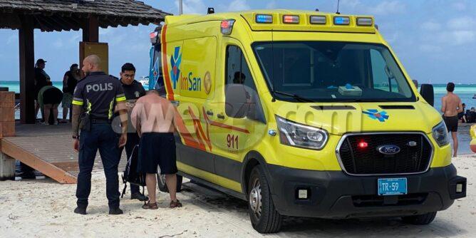 Diahuebs merdia a drenta informe di cu tin un boto banda di Arashi cu un persona masculino cu probalemente lo a haya benz y tin problema cu hala rosea y nan ta bayendo cu’ne na e pier di Hyatt., mesora a dirigi tanto polis como ambulans na e sitio. Na yegada di e patruya a bin compronde cu aki ta trata di un turista di 73 aña cu a bay duik cu e boto Biba Bon di Redsails pero e persona a hay’e den problema y cu probablemente lo a haya benz y tin problema pa hala rosea, polis mesora a sera e caminda pa bay na e pier di Hyatt. Na yegada di e ambulans nan a atende e persona y a stabilis’e pero e no tabata desea di bay cu ambulans.