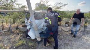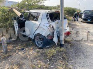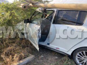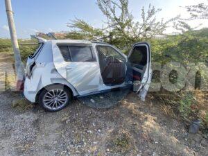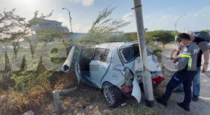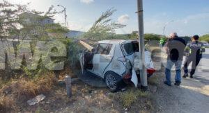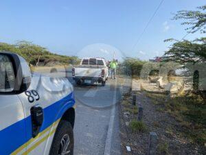 Diabierna mainta a drenta informe di un accidente riba Sasaki weg prome cu e rotonde pa bay hospital, mesora a dirigi un patruya na e sitio. Na yegada di e patruya a bin compronde cu e chauffeur di un Suzuki Swift (posiblemente pustando) pasando auto lo a dal e auto cu e ta pasando perde control bay di patras dal riba un taxi subiendo caminda y finalmente bay dal riba un palo di lus kibrando esaki den 2 y e parti ariba a cay riba e dal di e auto. Despues di esaki e chauffeur di e Swift a baha subi den otro auto y bandona e sitio mescos cu e auto cu e tabata pasando. Afortunadamente ningun hende a resulta herida. Polis ta buscando tanto e chauffeur como e auto cu e lo a dal. Un rato despues cu polis a bay e chauffeur di e Swift a bolbe.