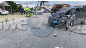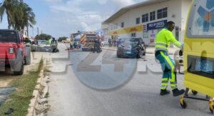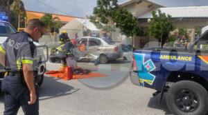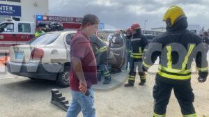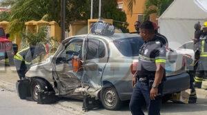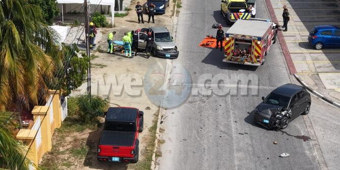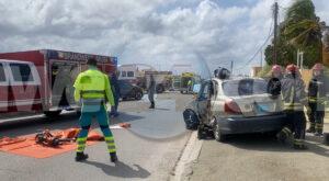 Diadomingo atardi a drenta informe di un accidente cu 2 persona herida y pega den auto banda di Bonbini Cargo na Primavera, mesora a dirigi tanto polis, ambulans como tambe bombero. Na yegada di e patruya a bin compronde cu aki ta trata di un accidente unda un Toyota Yaris a subi e crusada “T” sin a duna preferencia na e Geome bayendo pariba. E Geome bayendo pariba a dal e y e Yaris a bira 45 grado y e chauffeur a keda pega den e auto. Na yegada di e ambulans a pidi e equipo di rescate di bombero pa logra saca e victima chauffeur di e Yaris. Unabes cu nan a libere ambulans a transporte pa hospital.