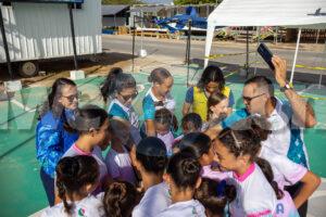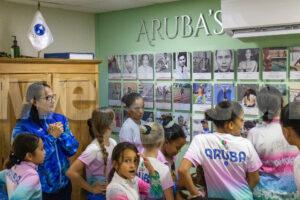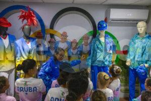 Directora Tecnico di COA Monica Fajardo a duna un tour completo di e cas di COA, unda a mustra e diferente antorchanan cu tin, e galeria di uniformnan di TEAMARU, e muraya cu potretnan di tur atleta Olimpico di Aruba y mucho mas. E hobennan a encanta e tour, unda a haya scucha tur e historia di COA y e mundo Olimpico.