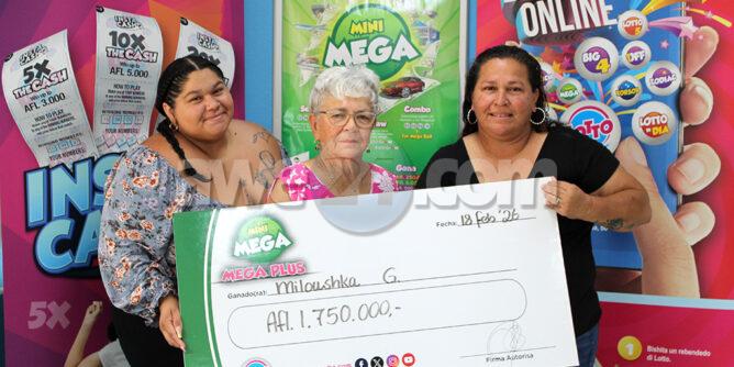 E feliz ganado a gana e jackpot total di Mini Mega y Mega Plus di 1 miyon 750 mil florin cu a wordo bendi na rebendedo Lucky Cher-Ann 2.