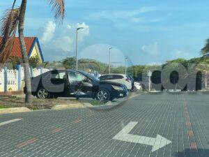 Diabierna mainta a drenta informe di un accidente cu hende herida banda di e Santana na Santa Cruz, mesora a dirigi tanto polis como ambulans na e sitio. Na yegada di e patruya a bin compronde cu aki ta trata di e chauffeur di un Toyota suv saliendo for di banda di e Santana a bay dal riba un auto bayendo pabao y a bay dal riba e banda di e chauffeur di e auto RHD. Debi na e impacto e chauffeur a resulta herida. Na yegada di e ambulans nan a atende e victima y a consehe pa bay su dokter di cas si e sinti mas dolor.