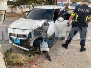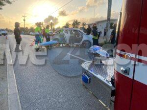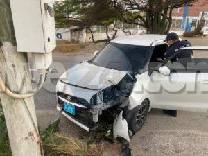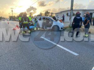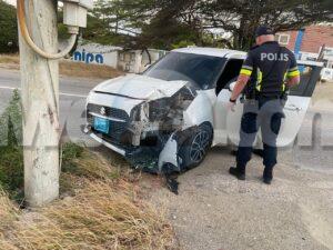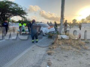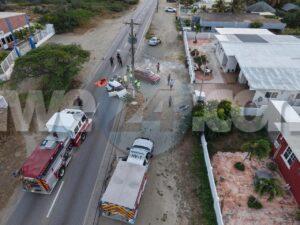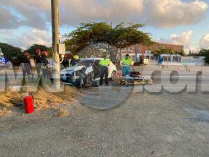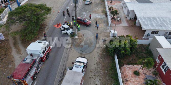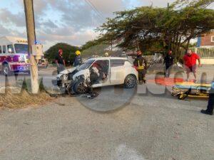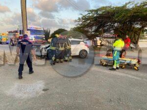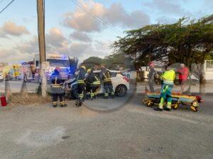Diasabra mainta a drenta informe di un accidente cu hende herida y pega den auto na Bloemond na Paradera, mesora a dirigi tanto polis, ambulans como tambe e equipo di rescate di bombero. Na yegada di e patruya a bin compronde cu e dama chauffeur di e Suzuki Swift bayendo pabao na dado momento a bay banda robes di caminda y e chauffeur contrario den un Hyundai Creta a purba kita p’e pa e no dal frontal riba dje pero toch a rasp’e den banda y a bay dal riba e palo di lus. E impacto cu e palo di lus tabata mucho fuerte te cu e dama su pia drechi a bay pega bao di e dashboard di e Swift. Na yegada di e ambulans y e bomberonan a haya nan mes ta corta e auto pa asina a logra libera e dama y sak’e pon’e den ambulans, Nan a atende y transporte mesora pa hospital.