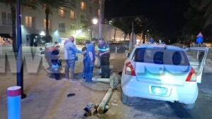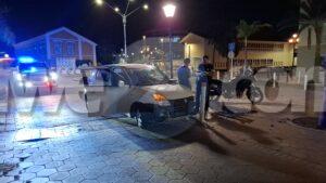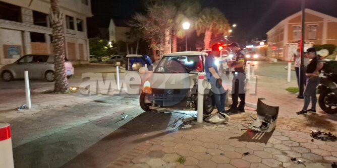 Diamars anochi a drenta informe di un accidente na Wilhelminastraat dilanti edificio di ex-Ministerio Publico, mesora a dirigi un patruya na e sitio. Na yegada di e patruya a bin compronde cu aki ta trata di un Suzuki Swift cual tabata maneha pa un homber bao influencia cu no tin rijbewijs y ta declara cu ta un dama tabata na stuur pero ela core bay. Polis a observa e camaranan den cercania y tabata personanan cu tabata na e sitio y cu a mira a declara cu ta e mes tabata na stuur. Polisnan mesora a test e chauffeur y a comproba cu e ta bao influencia ademas di a purba gaña e polisnan nan a detene.