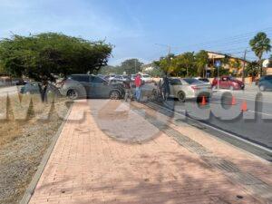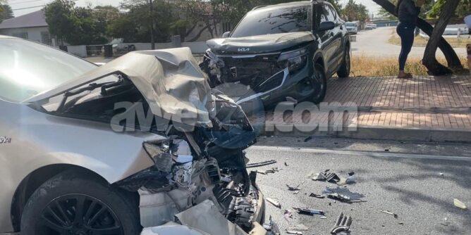 Diabierna atardi a drenta informe di un accidente cu hende herida na Ponton, mesora a dirigi tanto polis como ambulans na e sitio. Na yegada di e patruya a bin compronde cu aki ta trata di un accidente ora cu e chauffeur di un Toyota Camry bayendo nort a “blind” ela desvia bay na man robes y a bay dal frontal riba un Kia Seltos di direccion contrario. Debi na e fuerte impacto e airbag a “deploy” y a bay dal e chauffeur femenino. Na yegada di e ambulans nan a atende e victima na e sitio mes.