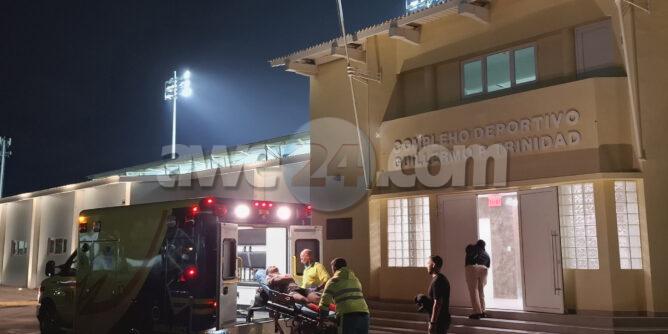 Diabierna anochi a drenta informe di un incidente cu a rekeri presencia di ambulans Stadion Guillermo Prospero Trinidad, mesora a dirigi un ambulans na e sitio. Na yegada di e ambulans a bin compronde cu durante un wega amistoso entre S.V. Sport vs Riverplate, unda den un hugada un hungador lo a bay schouder cu schouder y un a perde balans y a cay di banda y dal su cabes riba vloer. Ambulans a atende e deportista y a transporte pa hospital pa un control mas sigur riba su salud.