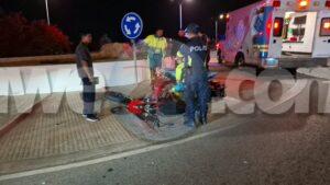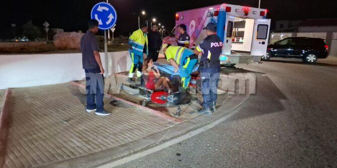 Diadomingo anochi a drenta informe di un accidente cu hende herida na e rotonde Tanki Leendert na E,J, “Watty” Vos blvd, mesora a dirigi tanto polis como ambulans na e sitio. Na yegada di e patruya a bin compronde cu un auto Kia Rio hatchback biniendo for di pariba a subi e rotonde sin duna preferencia na e scooter maneha pa un dama hulandes europeo y a dal e bente abao. Door di e caida e dama a resulta herida. Na yegada di e ambulans nan a atende e dama na e sitio mes y a avis’e cu si despues e sinti dolor e por bay na su dokter di cas of hospital.