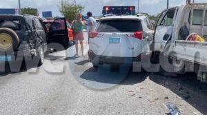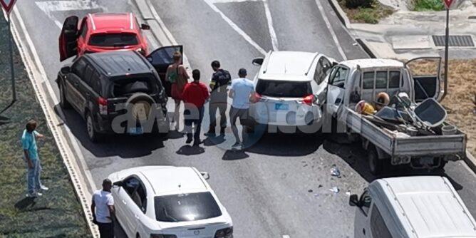 Dialuna atardi a drenta informe di un accidente cu hende herida entre 4 auto cu a blokia E.J.”Watty” Vos Blvd entre rotonde Sero Patrishi pa Cumana, mesora a dirigi tanto polis como ambulans na e sitio. Na yegada di e patruya a bin compronde cu aki ta trata di un accidente entre 4 auto unda un pick-up su brake a faya y ela bay dal tras di un Suzuki Vitara cu tabata na e banda drechi mand’e bay dal tras di un un auto cora cu tabata na e banda robes di caminda mientras e pick-up a sigui bay na man drechi dal y pusha un Toyota Rav4 cu tabata na e banda drechi y a hala esaki su atras meymey caminda blokiando henter e caminda. Esaki a causa un stagnacion den trafico na e orario “peak”. Debi na e multiple impactonan un dama a results herida pero na yegada di e ambulans e dolor a pasa y e ambulans a sigui su rumbo. Un rato despues ambulans a bolbe ser yama ya cu e dama tabata keha di dolor y a bolbe manda ambulans na e sitio. E trafico a keda completamente pega pa mas di un ora.