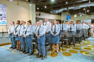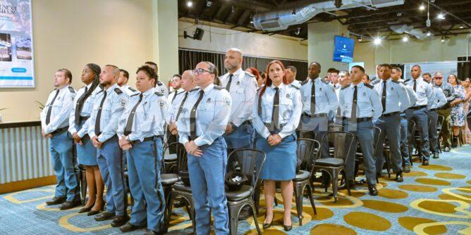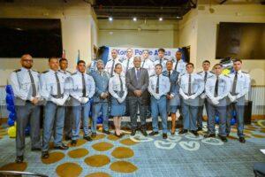 Noord, ARUBA: Awe diahuebs mainta a tuma lugar un ceremonia protocolario den e ballroom den Double Down na J.E. Irausquin Blvd. Den presencia di Minister di Husticia, Integracion y Transporte Publico mr. Arthur Dowers, altocomisario di Polis drs. Ramon Arnhem, Hefe di Scol di Polis E.J. Watty Vos sr. Sherina Arrindell, famia y coleganan a huramenta 29 studiante di Polis tambe entrega di diploma na 14 agente policial cu a termina nan estudio di liderazgo cu exito.