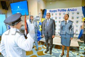 “Nos ta keda construi un Cuerpo fuerte, nos tin mas man, mas wowo pa e seguridad di e pueblo, e studiante nobo no ta cla ainda, nan falta pero bou di bon guia y bon norma di Polis nos lo mira bon resultado” tabata palabranan di Minister di Husticia Arthur Dowers.