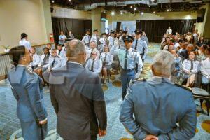 “Kisas bo ta haya mas strepi of subi di rango, pero ta un Polis integro, duna respet y tin e norma cu balornan halto ta haci bo un bon Polis. Masha pabien na tur studiante cu a huramente awe tambe na e agentenan policial cu a ricibi nan diploma, boso a traha duro pa esaki!” tabata palabranan di altocomisario Arnhem masha orguyoso di mira desaroyo positivo den nos Cuerpo.