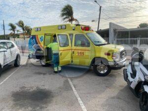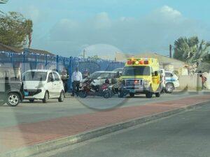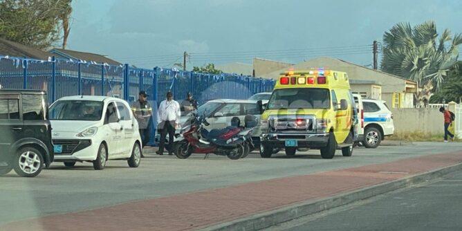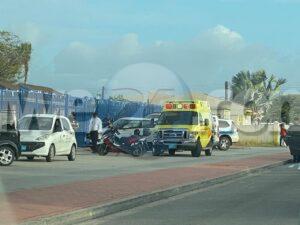 Dialuna mainta a drenta informe di un accidente cu hende herida dilanti Colegio San Antonio, mesora a dirigi tanto polis como ambulans na e sitio. Na yegada di e patruya a bin compronde cu aki ta trata di un hoben riba un motocicleta a bay shortcut net ora un motorcycle ta bay staciona y a dal esaki benta abao unda e scooter a bay cay riba e motociclista su pia unda e dama a ser herida. Na yegada di e ambulans nan a atende e dama na e sitio mes.