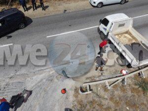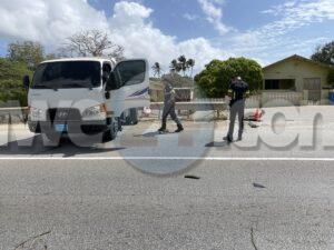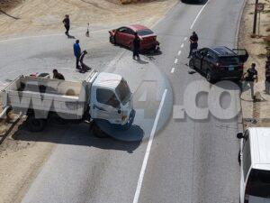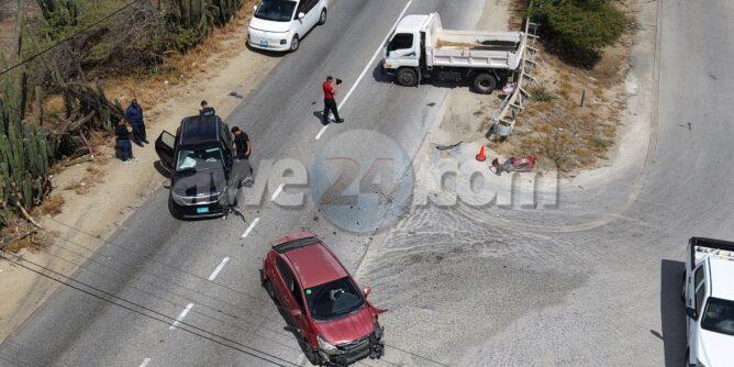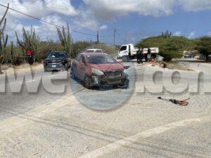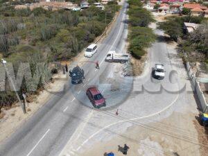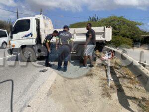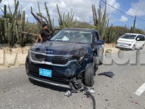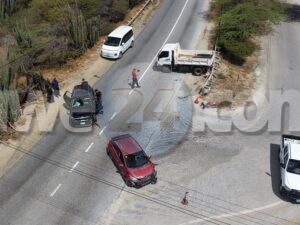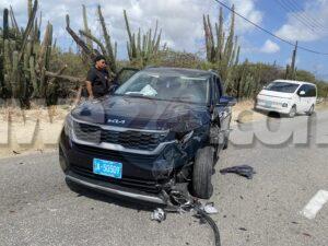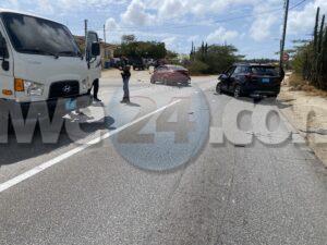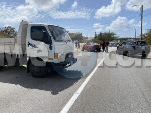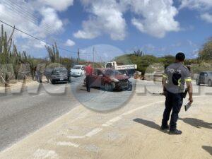Dialuna mainta a drenta informe di un accidente cu hende herida na Santa Cruz, mesora a dirigi tanto polis como ambulans na e sitio. Na yegada di e patruya a bin compronde cu aki ta trata di un accidente unda un auto biniendo di nort un Kia Rio a bay bira na man robes pa bay na Jan Flemming pero un Kia Soluto biniendo su tras a dal e mand’e bay dal riba un truck di direccion contrario bir’e te cu a bay dal un borchi trafico. Debi na e impacto e chauffeur di e Kia Soluto a resulta herida. Na prome instante a kere cu e dama chauffeur di e kia Soluto a resulta herida, pero na yegada di e ambulans ela ser atendi na e sitio mes.