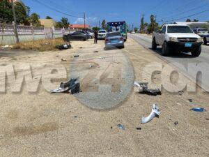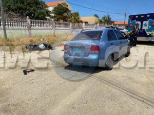 Diamars merdia a drenta informe di un accidente cu hende herida na San Miguel, mesora a dirigi tanto polis como ambulans na e sitio. Na yegada di e patruya a bin compronde cu aki ta trata di un accidente unda un Chevrolet Aveo a baha caminda na man robes dilanti di e dama riba e motocicleta a bay dal basta duro riba e auto cay abao y resulta herida. Na yegada di e ambulans nan a atende e dama y a transporte pa hospital.