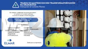 Durante e trabou, ta necesario pa desconecta temporalmente e coriente pa garantisa seguridad tanto pa ELMAR su tecniconan como habitantenan y negoshinan den e area.