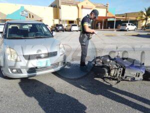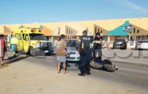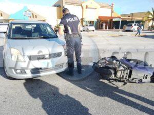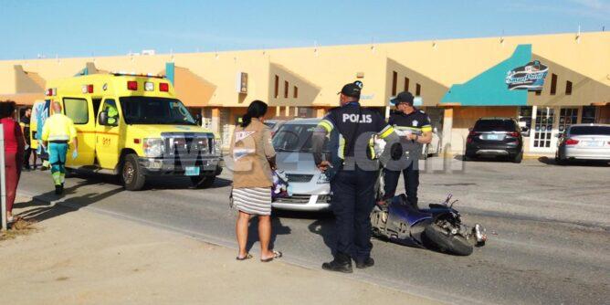 Diahuebs atardi a drenta informe di un accidente cu hende herida banda di Bright Bakery na Piedra Plat, mesora a dirigi tanto polis como ambulans na e sitio. Na yegada di e patruya a bin compronde cu aki ta trata di un accidente unda un chauffeur a bay subi caminda pero net ora cu un brommer ta bini y ta dal e motociclista lagando e cu sla na Pia y na su lomba. Na yegada di e ambulans nan a atende y a transporte pa hospital.