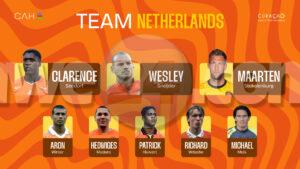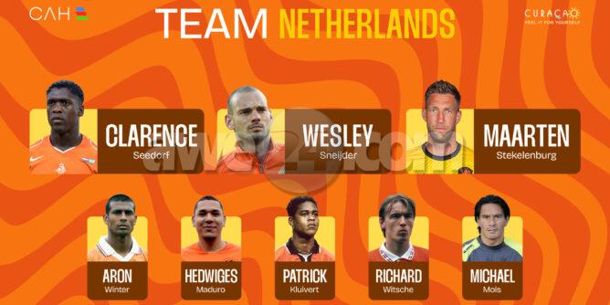 Spaña lo ta representá pa Fernando Morientes i Michel Salgado, miéntras ku Italia lo sali ku Marco Materazzi i Alessandro Nesta. E héroenan lokal di Kòrsou — inkluso Stallone Isenia, Ranties “Terry” Rosina i Ludjino “Jin” Hojer — ta kompletá e konstelashon ekstraordinario di estrellanan.
