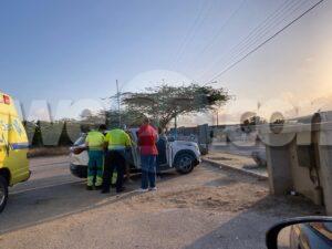 Dialuna mainta a dr.enta informe di cu un dama lo a cay canando banda di caminda na E.J. “Watty” Vos y a herida su cara, y nan ta wardando ambulans dilanti un supermercado na Tanki Leendert, ,mesora a dirigi ambulans na e sitio. Na yegada di e ambulans nan a atende e dama.
