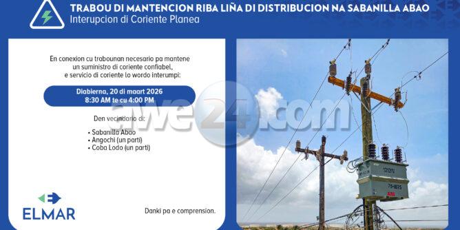 Pa sigui garantisa suministro di electricidad; ELMAR lo ehecuta trabou di mantencion den e area di Sabanila Abao y vecindario.