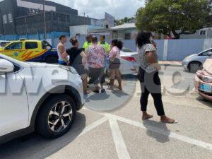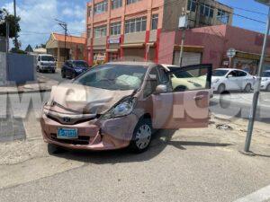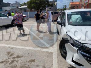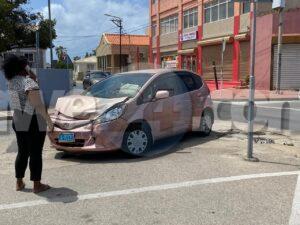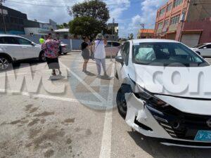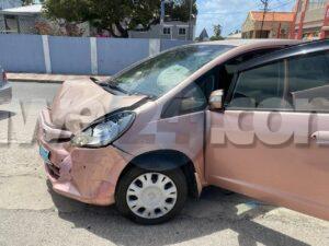 Diamars merdia a drenta informe di un accidente cu hende herida na e crusada Emmastraat J.G. Emanstraat, mesora a dirigi tanto polis como ambulans na e sitio, Na yegada di e patruya a bin compronde cu aki ta trata di un accidente unda un auto di huur maneha pa un dama turista biniendo zuid den Emmastraat no a para pa duna preferencia na e Honda Fit biniendo di pabao y nan a dal den otro. Debi na e impacto na prome instante 2 persona a resulta herida pero na yegada di e personal di ambulans nan no tabata desea atencion medico.