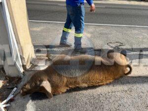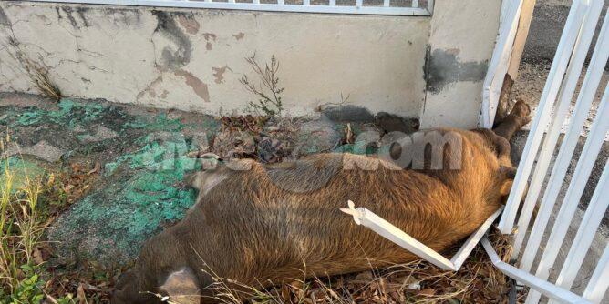 Diahuebs mainta a drenta informe di un accidente banda di Marinierskazerne na Savaneta, mesora a dirigi un patruya na e sitio. Na yegada di e patruya a bin compronde cu un chauffeur a bay desvia pa un porco grandi cu a crusa caminda rapidamente pero e porco a bay na e mesun direccion di e auto y e auto a bay dal e porco y un cura di cas. E impacto tabata fatal pa e porco.