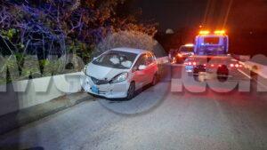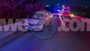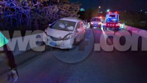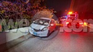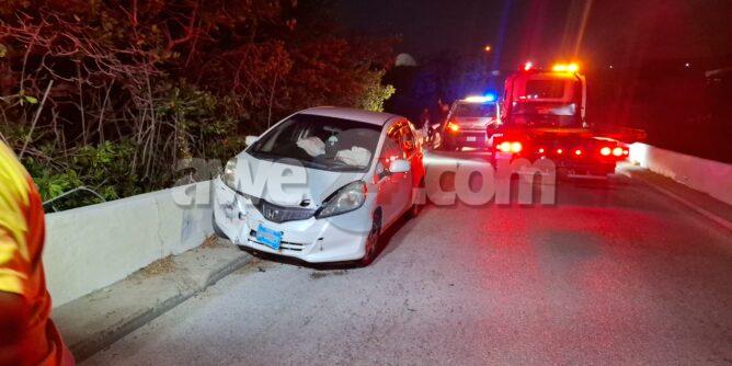 Diadomingo atardi laat a drenta informe di un accidente riba e brug bieuw di Pos Chikito, mesora a dirigi un patruya na e sitio. Na yegada di e patruya a bin compronde cu aki ta trata di un accidente unda e chauffeur di un Honda Fit a bira malo tras di stuur y a bay na banda drechi dal na e rand. Mirando cu ela bira malo dal e rand di e brug y a haya dolor na pecho a pidi ambulans na e sitio. Na yegada di e ambulans nan a atende y a transporte pa hospital.