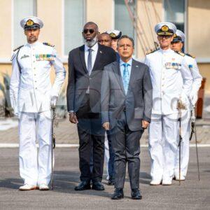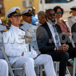 çPresente na e ceremonia tabata tey, entre otro, e Gobernador di Curaçao, e Prome Ministro di Curaçao y e Comandante di Marina den Caribe.