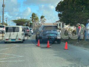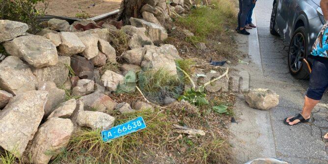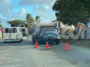 Dialuna atardi a drenta informe di un accidente poco comun na Jaburibari, mesora a dirigi un patruya na e sitio. Na yegada di e patruya a bin compronde cu un auto bayendo zuid normal riba e caminda y diripiente di patras ta bini un pickup ta purba y ta pasa e auto aki na man drechi subi transhi raspa e otro auto ranca su spiel y sigui core bay. Den su trajectoria su number di auto a cay y a keda atras. Polis a tuma su number y ta trahando pa bay gar’e y pone para responsabel pa tur e gastonan.
