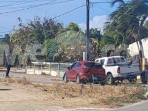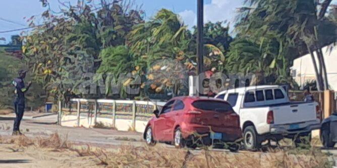 Diabierna Santo atardi a drenta informe di un accidente na e pompstation di gasolin na Paradera, mesora a dirigi un patruya na e sitio. Na yegada di e patruya a bin compronde cu aki ta trata di un accidente pa falta di preferencia unda un auto cora a bay subi e caminda grandi pero no a tene cuenta cu e pick-up di pariba y esaki a bin dal riba dje. Afortunadamente ningun hende a resulta herida.
