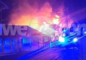 Diadomingo madruga a drenta informendi cu tin un cas completamente na candela den Bernhardstraat, mesora a dirigi tanto polis, bombero como tambe ambulans na e sitio. Na yegada di e patruya a bin compronde cu aki ta trata un cas di palo cu bloki cu tabata full na camdela y a pidi pa bomberonan presenta mesora. Na yegada di bomberonan mesora a inicia cu un combate pa a logra domina y paga e candela completamente. Na e sitio a encontra cu un persona cu lo a inhala hopi huma pa cual a pidi ambulans. Na yegada di e ambulans nan a atende e persona pero e no tabata desea di bay Centro Medico pa haya mas atencion.
